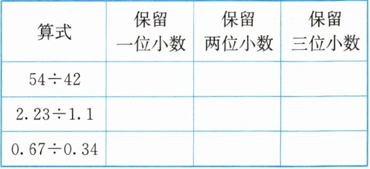 |算式|保留一位小数|保留两位小数|保留三位小数|