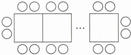 3. 一张桌子坐8人,两张桌子并起来坐12人,三张桌子并起来坐16人……照这样,12张桌子并成一排可以坐多少人?(6分)