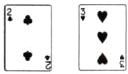 2. 闭上眼睛摸一张牌,摸到____的可能性最大,摸到____的可能性最小。