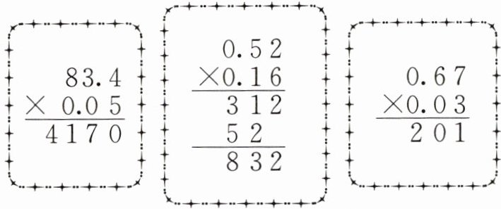 我发现:积的小数位数不够时,要在前面用( )补足,再点( )。