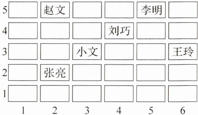 (3)王玲坐在第( )列,第( )行,用数对表示为( , )。