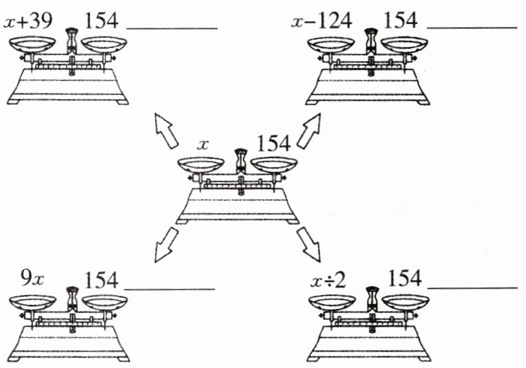 2. 在横线上填上适当的符号和数,使天平平衡。