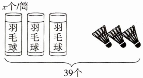 羽毛球:3个筒,3个羽毛球,共39个