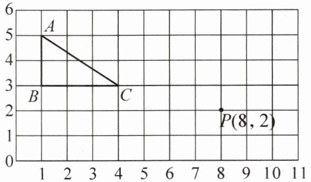 2. 如果把三角形向右平移5格,再向下平移2格,先画出图形,再用数对表示平移后的三角形A'B'C'三个顶点的位置。(9分)