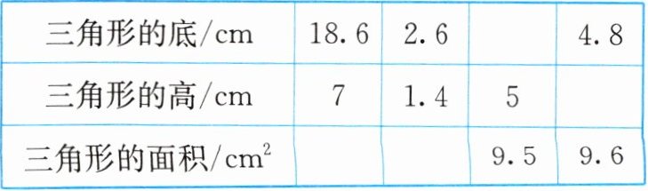 |三角形的面积$/cm^2$| | |9.5|9.6|