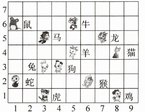 2.(1)(3,5) (8,4) (8,1) (3,1)(2)鼠 牛 龙 兔