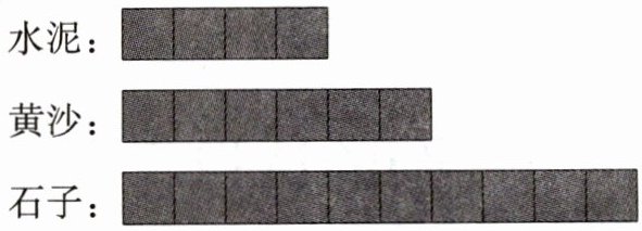 (2)如果这三种材料各有 $36\ t$,当黄沙全部用完时,水泥还剩多少吨?石子还要增加多少吨?