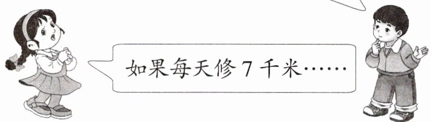 工程队$5$天修的长度:$7×5 = 35$(千米)
