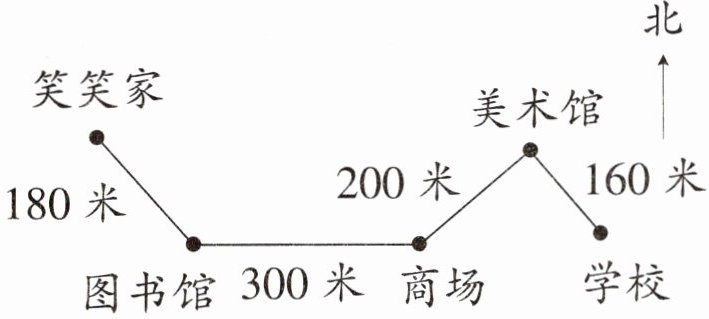 )米到达商场。(3)笑笑从家到学校总共要走(