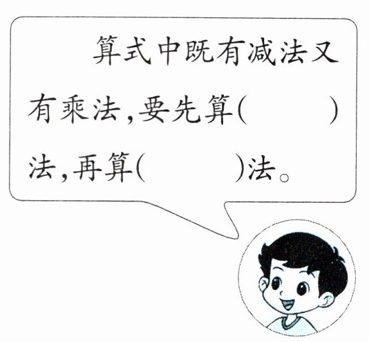 算式中既有减法又有乘法,要先算(乘)法,再算(减)法。