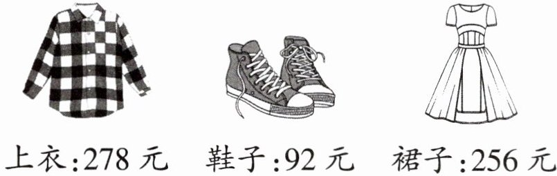 上衣$278$元 + 鞋子$92$元 + 裙子$256$元 = $626$元。