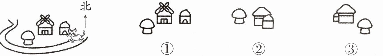 3. 小猫沿着小路自东向西奔跑,它看到下面三个画面的先后顺序是(