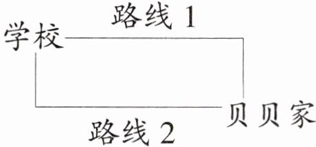 2. 如图,贝贝每天放学回家有两条路线可以走。这两条路线相比,(