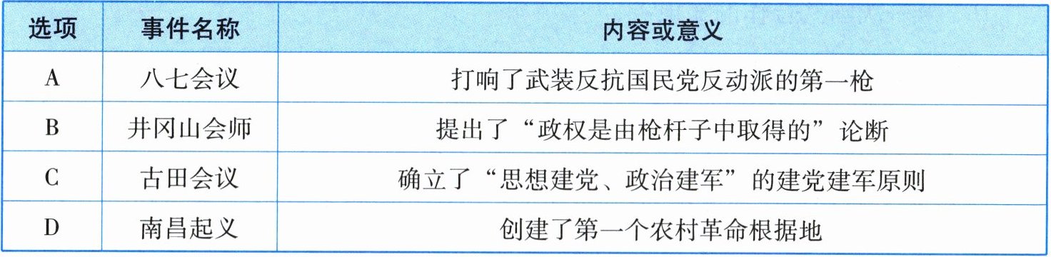 |C|古田会议|确立了“思想建党、政治建军”的建党建军原则|