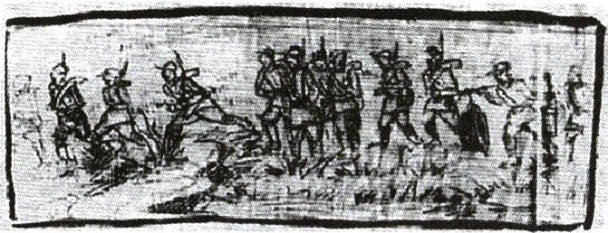 8. 下图是新中国的将军外交家黄镇在1935年创作的一幅漫画,这幅画定格了戎马倥偬的战争岁月。下列各项与该漫画所反映的史实相符的是( )
