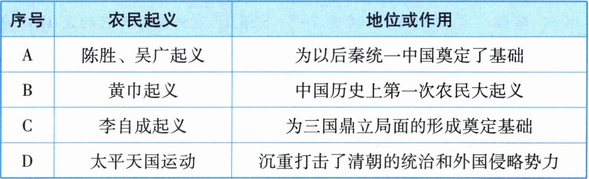 |序号|农民起义|地位或作用|