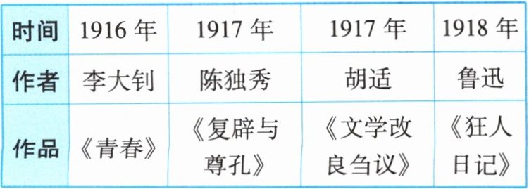 - 发端:1915年,①______在上海创办《青年杂志》,后改名《②______》