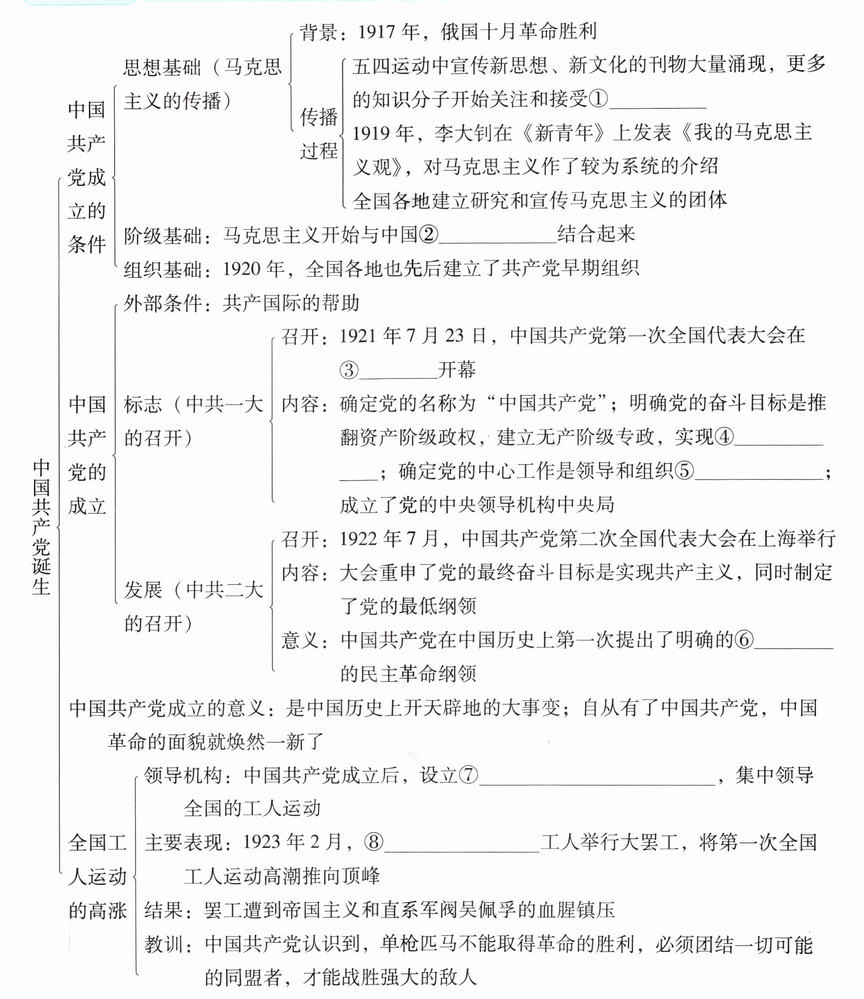领导机构:中国共产党成立后,设立⑦______,集中领导全国的工人运动