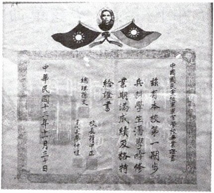 2. 下图是一张毕业证书照片,其书写文字为:“兹有本校第一期步兵科学生潘学吟修业期满成绩合格特给证书。总理孙文、校长蒋中正、党代表廖仲恺。中华民国十三年十一月三十日。”据此可知,颁发该证书的年份和学校应是( )。