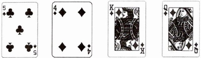 5. 下面4张扑克牌上的点数,经过怎样的运算才能得到24呢?至少写出两种方法。