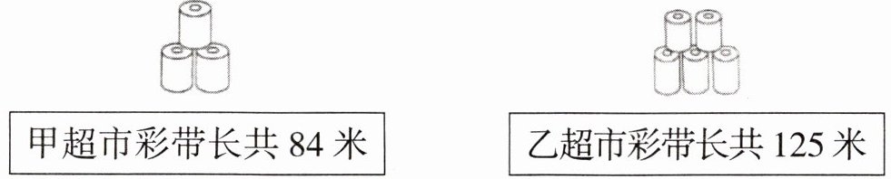 3. 甲超市的彩带比乙超市的彩带每卷长多少米?