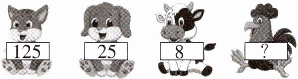 6. 四个小动物各拿着一个数,现在要使这四个数连乘的积为100000,你知道大公鸡拿的数是多少吗?
