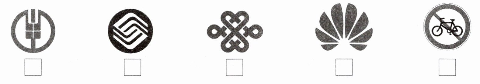 1. 下面哪些标志是轴对称图形,是的在方框里画“√”,不是的画“×”。