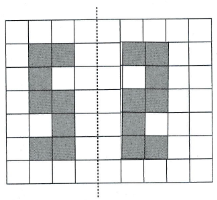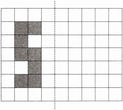 3.以虚线为对称轴,在点子图中画出对称图形的另一半。