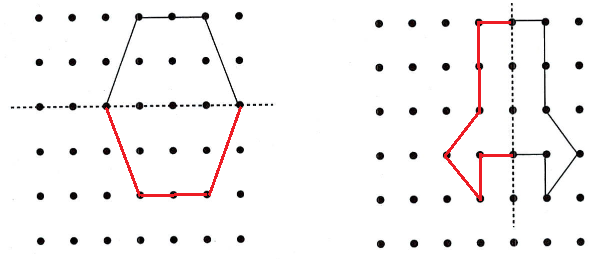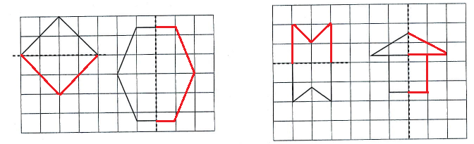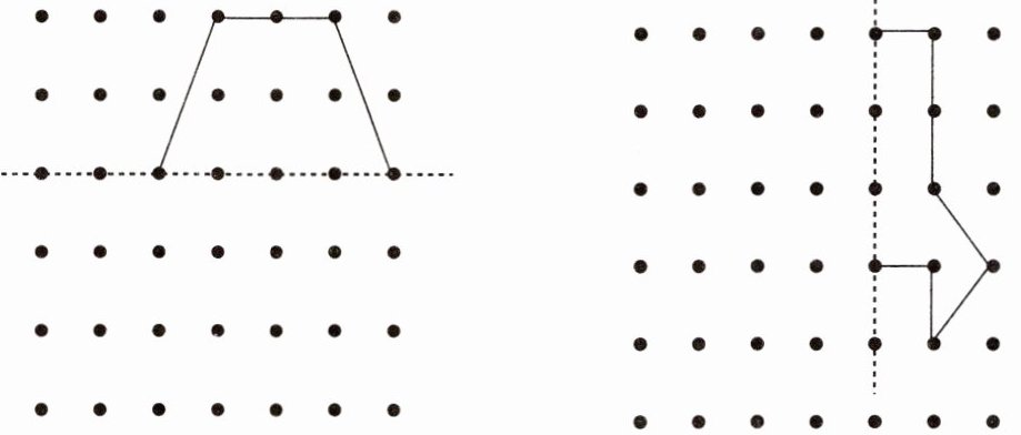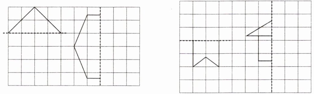 4.以虚线为对称轴,在方格纸上画出轴对称图形。