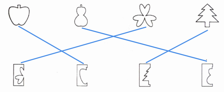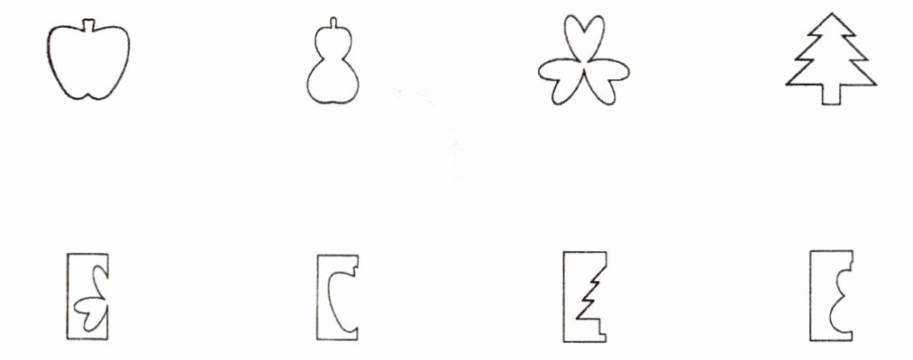 1.连一连,第一行的图形是从哪张纸上剪下来的?