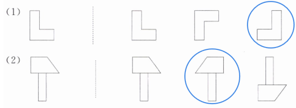 2.从镜子中看到左边图形是什么样子的?请圈出来。