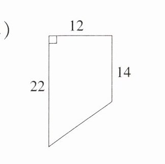 (2) 梯形面积公式:$S=(a+b)h÷2$,其中$a=14m$,$b=22m$,$h=12m$。