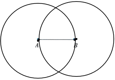 4. 以线段AB为半径,以线段的两个端点为圆心分别画两个圆。