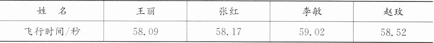 |飞行时间/秒| $58.09$ | $58.17$ | $59.02$ | $58.52$ |