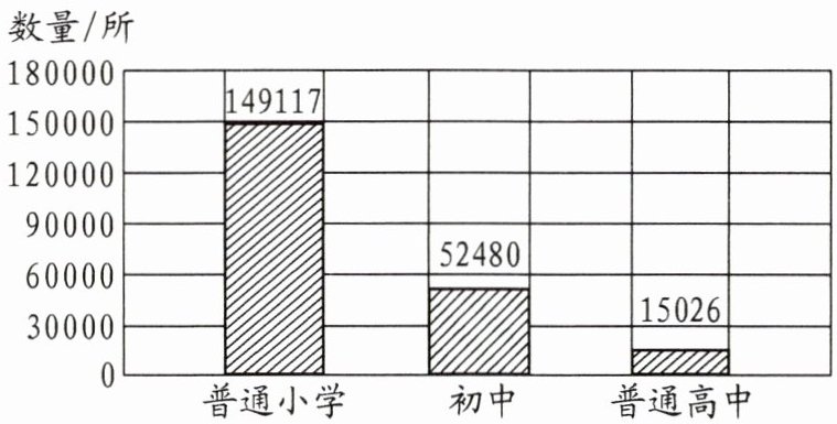 2. 下面是$2022$年全国普通小学、初中、普通高中学校数量统计图。先把图中的数改写成用“万”作单位的数,再保留一位小数。