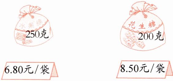 4. 根据下图推算:每千克水果糖售价多少元?每千克花生糖呢?