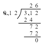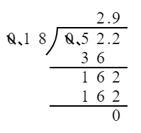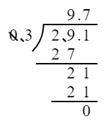 $2.91÷0.3$ $0.522÷0.18$ $3.12÷0.12$