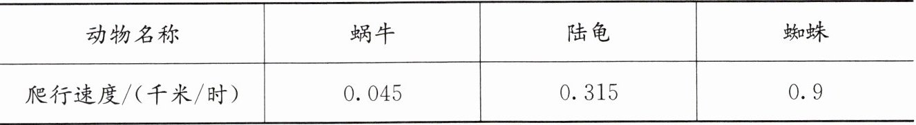 3. 小华查阅资料,了解到几种小动物的爬行速度,结果如下表: