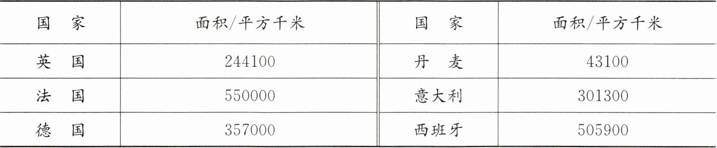 发现:表中这些欧洲国家面积的总和比我国陆地面积小。