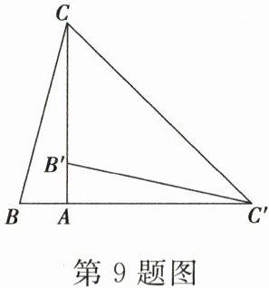 9. 如图,在 $ Rt\triangle ABC $ 中,$ \angle BAC = 90° $,将 $ \triangle ABC $ 绕点 $ A $ 顺时针旋转 $ 90° $ 后得到的 $ \triangle AB'C' $(点 $ B $ 的对应点是点 $ B' $,点 $ C $ 的对应点是点 $ C' $),连接 $ CC' $,若 $ \angle CC'B' = 32° $,则 $ \angle B $ 的大小是(