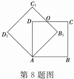 8. 如图,边长为1的正方形 $ ABCD $ 绕点 $ A $ 逆时针旋转 $ 45° $ 后得到正方形 $ AB_1C_1D_1 $,边 $ B_1C_1 $ 与 $ CD $ 交于点 $ O $,则四边形 $ AB_1OD $ 的面积是(