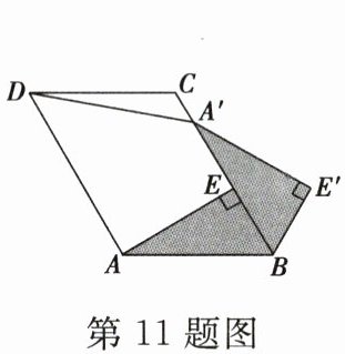 11. 如图,已知在 $ □ ABCD $ 中,$ AE \perp BC $ 于点 $ E $,以点 $ B $ 为中心,取旋转角等于 $ \angle ABC $,把 $ \triangle BAE $ 顺时针旋转得到 $ \triangle BA'E' $,连接 $ DA' $,若 $ \angle ADC = 60° $,$ \angle ADA' = 50° $,则 $ \angle DA'E' $ 的大小为(