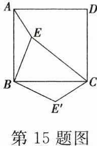 15. 如图,点 $ E $ 是正方形 $ ABCD $ 内一点,连接 $ AE $、$ BE $、$ CE $,将 $ \triangle ABE $ 绕点 $ B $ 顺时针旋转 $ 90° $ 到 $ \triangle CBE' $ 的位置,若 $ AE = 1 $,$ BE = 2 $,$ CE = 3 $,则 $ \angle BE'C = $