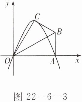 已知在 $ Rt\triangle OAB $ 中,$ \angle OAB = 90^{\circ} $,$ \angle BOA = 30^{\circ} $,$ AB = 2 $,若以 $ O $ 为坐标原点,$ OA $ 所在直线为 $ x $ 轴,建立如图 $ 22 - 6 - 3 $ 所示的平面直角坐标系,点 $ B $ 在第一象限内,将 $ Rt\triangle OAB $ 沿 $ OB $ 折叠后,点 $ A $ 落在第一象限内的点 $ C $ 处。