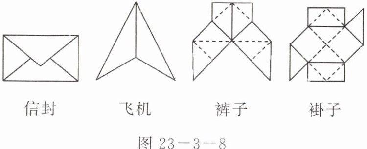 4. 观察如图 23 - 3 - 8 所示的用纸折叠成的图案.