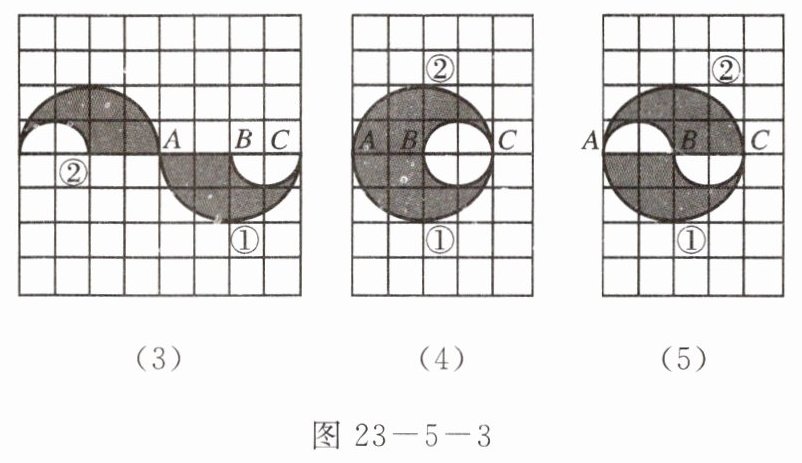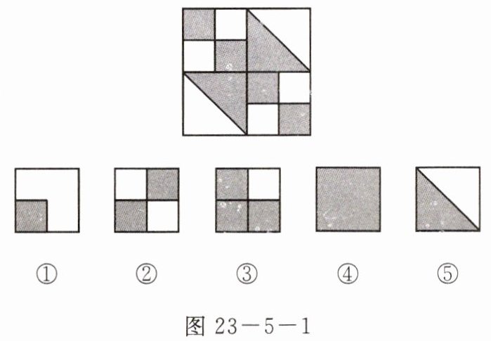 2. 图23-5-1中上面的图案是由下面五种基本图形中的两种拼接而成的,这两种基本图形是(