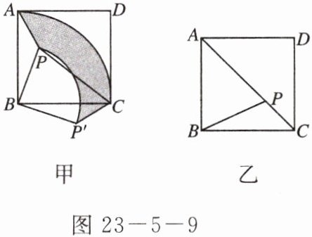 (1)将△PAB绕点B顺时针旋转90°到△P'CB的位置(如图23-5-9甲).