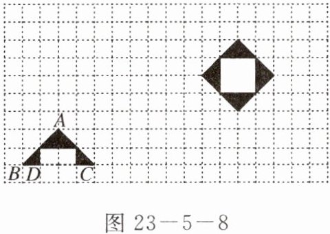 对称等知识,说明图23-5-8中“格点四边形图案”是如何通过“格点△ABC图案”变换得到的.