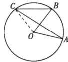 7. 如图 24 - 4 - 5,$AC为\odot O$的弦,点$B在\overset{\frown}{AC}$上,若$\angle CBO = 58^{\circ}$,$\angle CAO = 20^{\circ}$,则$\angle AOB$的度数为______。