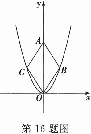 16. 二次函数 $ y = \sqrt{3}x^2 $ 的图象如图,点 $ O $ 为坐标原点,点 $ A $ 在 $ y $ 轴的正半轴上,点 $ B $、$ C $ 在二次函数 $ y = \sqrt{3}x^2 $ 的图象上,四边形 $ OBAC $ 为菱形,且 $ \angle OBA = 120° $,则菱形 $ OBAC $ 的面积为
